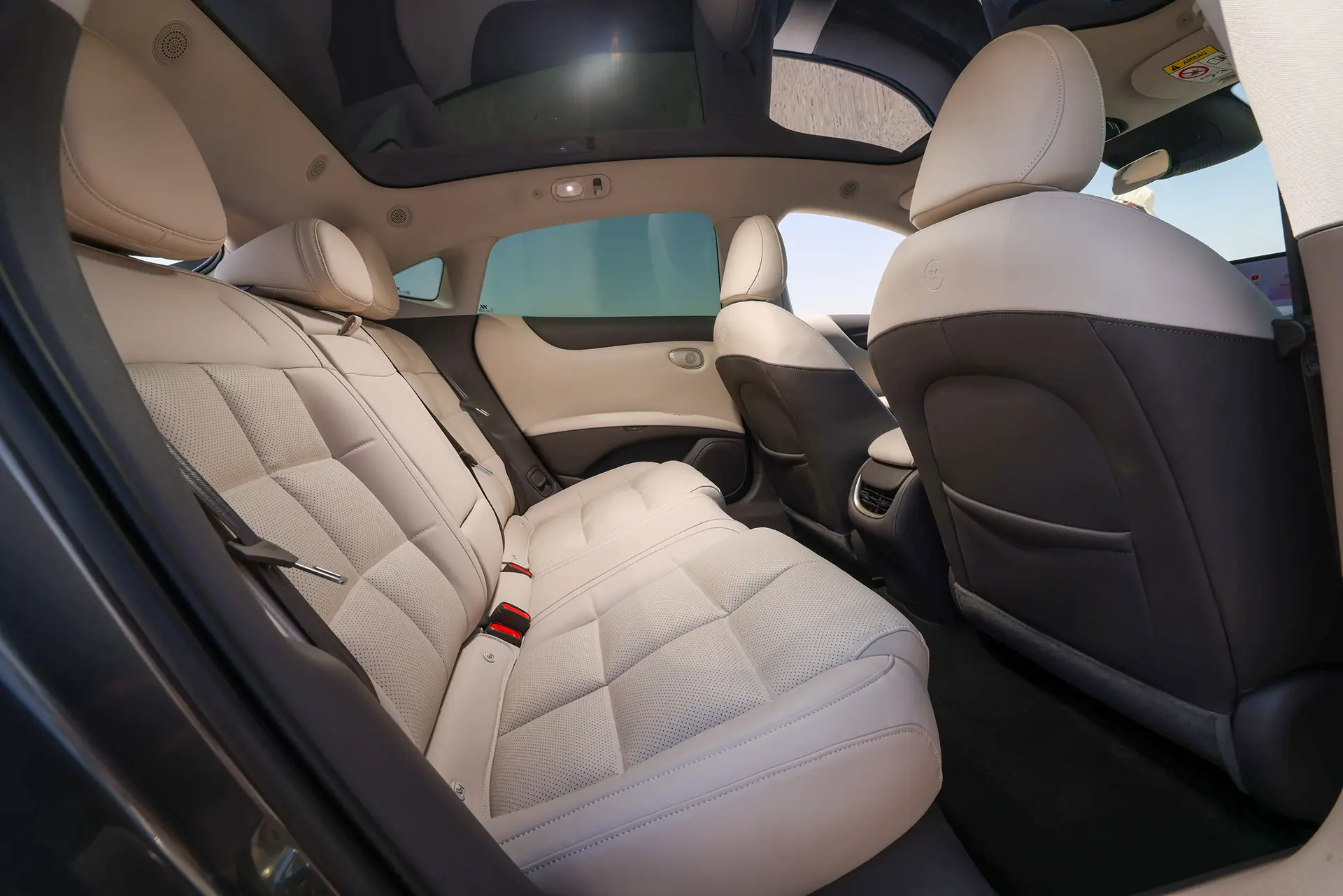 בכל הדגמים נמצא רשימת אבזור עשירה הכוללת, בין היתר: מסך רחב "26.3 עבור לוח המחוונים ומערכת המולטימדיה, מסך בין המושבים (וקרוב לידיים של הנהג) בגודל של "10.5 המשמש לשליטה על כל מערכות הרכב, חלון גג, מצלמת 360 מעלות, חיישני חניה הקיפיים, ריפודי עור, מושבים קדמיים חשמליים עם חימום ואוורור, חימום למושבים מאחור, דלת תא מטען חשמלית, אפליקציה לשליטה מרחוק, מערכת חניה אוטומטית עם זיכרון נסיעה לאחור של עד 100 מטר, תאורת אווירה ב-256 צבעים, מפתח חכם, משטח טעינה אלחוטי מהיר, הרחבה לאנדראויד אוטו ואפל קארפליי, בקרת אקלים מפוצלת, חיישני תאורה וגשם, תאורת LED מלאה ועוד. את דגמי הטווח ארוך ניתן לקבל כאופציה עם מתלי אוויר אדפטיביים, סטנדרט בדגם הביצועים.